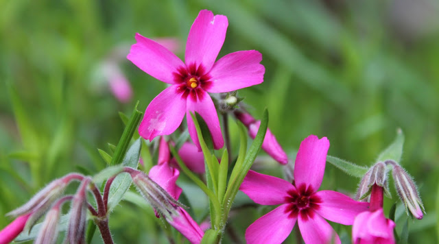| Kuvailin puutarhani (jonka teema ajoittain on "Herran haltuun") kukkaloistoa. |